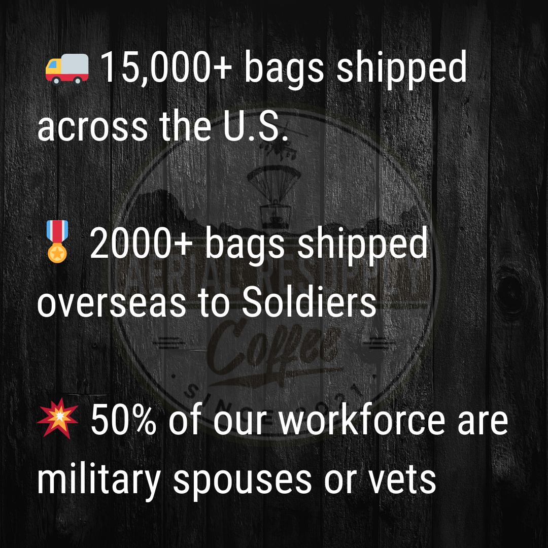 We’re Aerial Resupply Coffee—a veteran-owned coffee company forged in service, mission-driven at our core, and built to support those who always answer the call. Whether you’re on the front lines or fueling your day from the office, ARC exists to serve bold coffee with even bolder purpose.